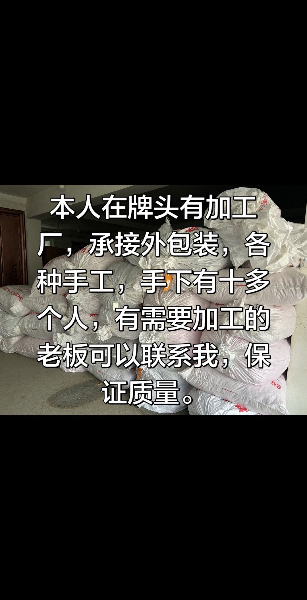 承包各类手工活,手下有几十个人可以做,有老板需要的话联系我,保证产品质量稳定可靠,诸暨牌头镇,距离义乌四十多分钟路程。