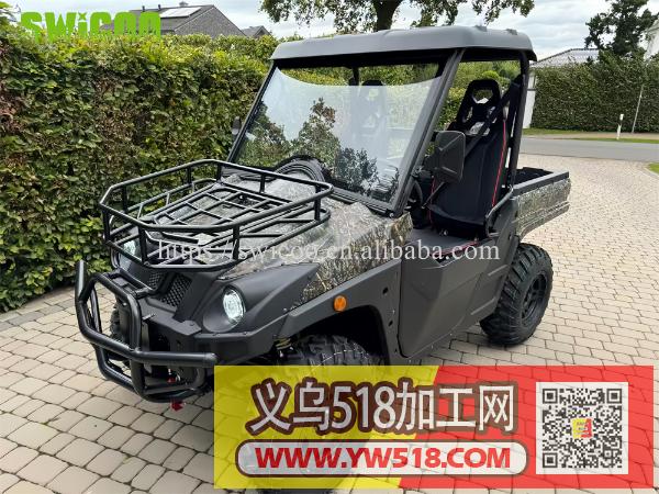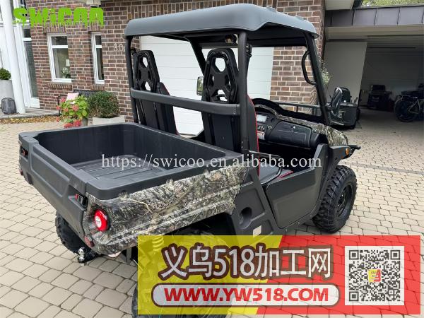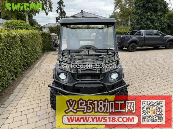 一款有EEC 认证的 5千瓦 双座电动全地形车,新款来袭!颜色自定义,搭配轴传动四驱,45千米每小时极速驰骋无惧复杂路况。320厘米超高离地间隙 +独立悬挂系统,搭配前后液压碟刹,操控稳定又安全。100 公里超长续航,6-8 小时快速补能,超大载货斗兼顾实用与越野。不管是户外探险还是越野运动,都是理想之选的型号!